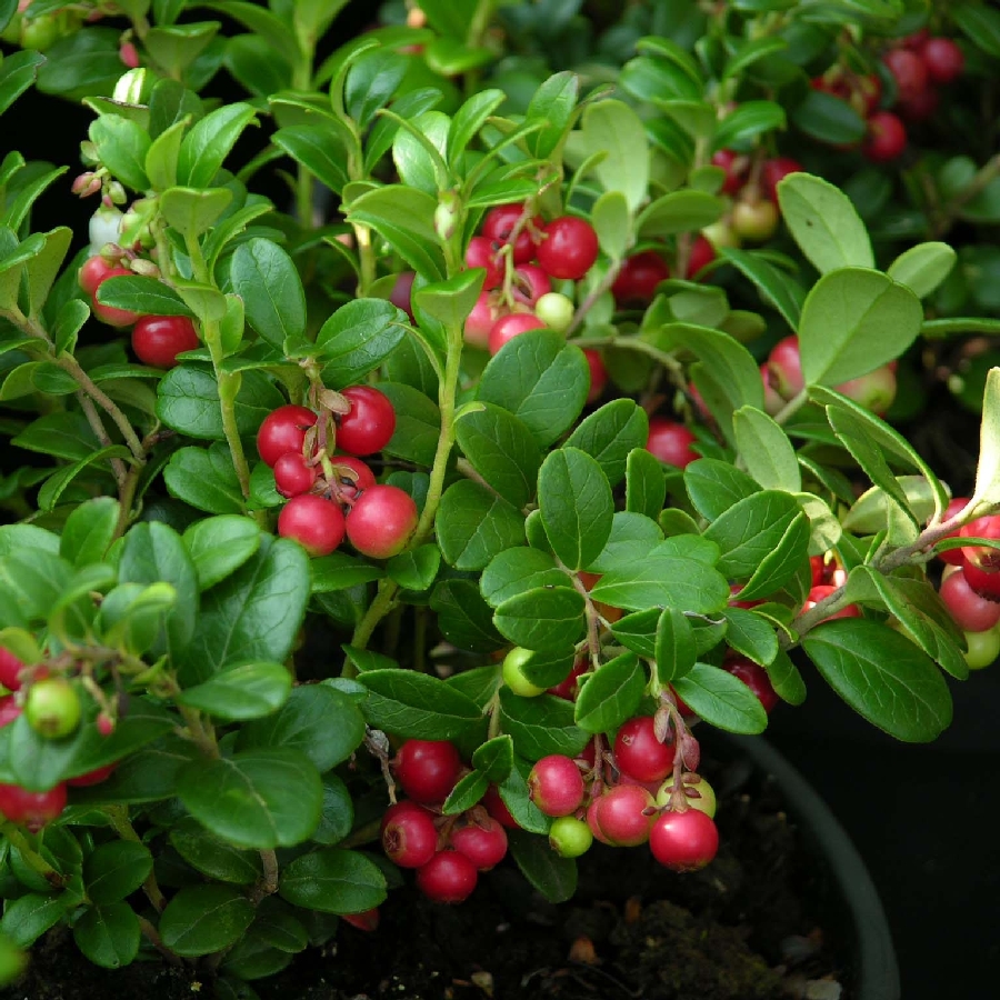 Брусника Miss Cherry - это удивительное растение, которое поразит вас своей красотой и плодовитостью. Ее темно-зеленые листья весной превращаются в оранжево-красные осенью, создавая неповторимый колорит вашего сада. Цветки белого цвета расцветают в мае-июне, наполняя воздух нежным ароматом.