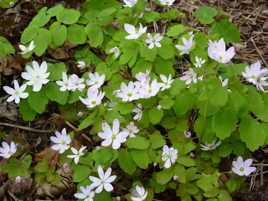 Рассада Джефферсонии двулистной прекрасна не только своими необычайно нежными белыми цветочками, но и формой листочков, которые еще долго после цветения будут украшать палисадник. На месте опавших цветов появляются аккуратные коробочки с семенами.