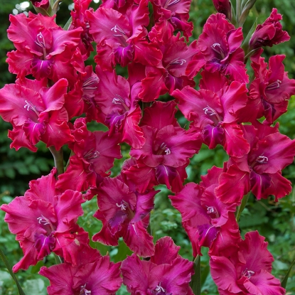 Гладиолус крупноцветковый виолет мун - это воплощение изысканной красоты и неповторимого очарования. Его стебель уверенно поднимается к солнцу, словно стремясь дотянуться до небес, а его крупные цветки пурпурного оттенка с белым штрихом притягивают взгляды как магнит. Листья гладиолуса имеют форму, напоминающую меч, что придает растению особую изящность и грацию.