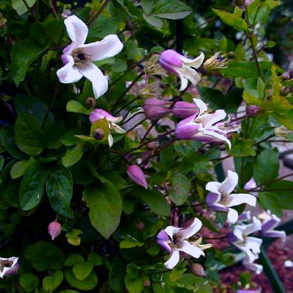 Саженцы Клематиса гибридного Elf (Clematis) благодаря своим листовым черешкам могут подниматься на высоту до 2,5 метров. Предпочтительно выращивать данный сорт на хорошо освещенных местах. Почва должна быть плодородной и рыхлой. Сорт Эльф во время цветения – с июля по сентябрь месяц – покрывается множеством маленьких цветочков в виде колокольчика. Цветки бело-сиреневого цвета, которые эффектно смотрятся на покрове зеленой листвы. Данный сорт широко используется в оформлении балконов, террас. Также можно использовать в качестве почвопокровного растения между деревьями и кустарниками.