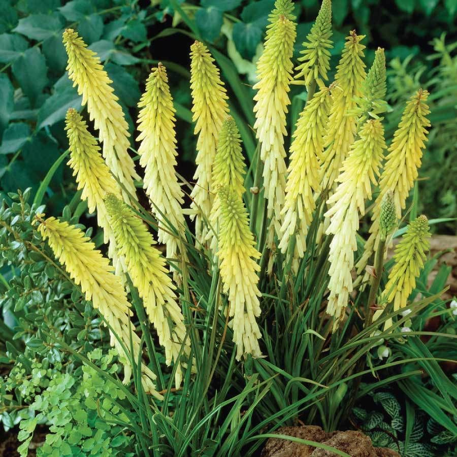 Рассада книфофии (Тритома) ягодной Little Maid позволит вырастить на садовом участке экзотическое растение, обладающее высокой декоративностью. Оно представляет собой куст, состоящий из узких зеленых листьев, а также длинных стеблей (до 100 сантиметров), на которых распускаются колосовидные соцветия нежно-желтого цвета.