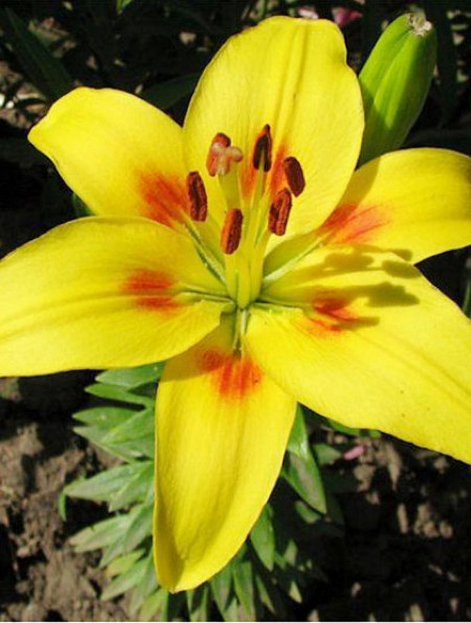 Окраска цветка : жёлтый с красным пятном у основания лепестка