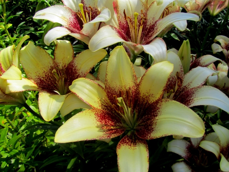 Лилия азиатская танго сесиль - это великолепное растение с кремовыми цветками, украшенными темно-бордовым крапом. Ее стебель достигает высоты до 130 см, а размер цветка составляет 15 см. Листья лилии имеют зеленую окраску и интересную форму. Это растение предпочитает солнечные и полутенистые места для посадки, идеально подходит для газонов, групповых посадок и миксбордеров.