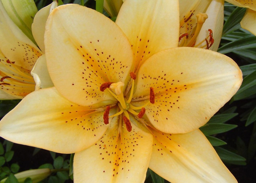 Саженцы и рассада декоративного многолетнего цветка Лилия ла-гибрид Бестселлер (Lilium la-gibrid Bestseller) подарят летним клумбам россыпь крупных кремовых цветов с крапчатыми лепестками и высветленным желтым центром. В целом растение вырастает до 105 см в высоту и сохраняет декоративность зеленых листьев до глубокой осени. Период цветения начинается в июле. Морозостойкость и крупные цветы с восковидной фактурой — отличительная черта сорта. Ла-гибриды считаются одними из лучших выгоночных лилий. Цветы высаживают в открытом грунте группами, в миксбордерах, специально выращивают для срезки.