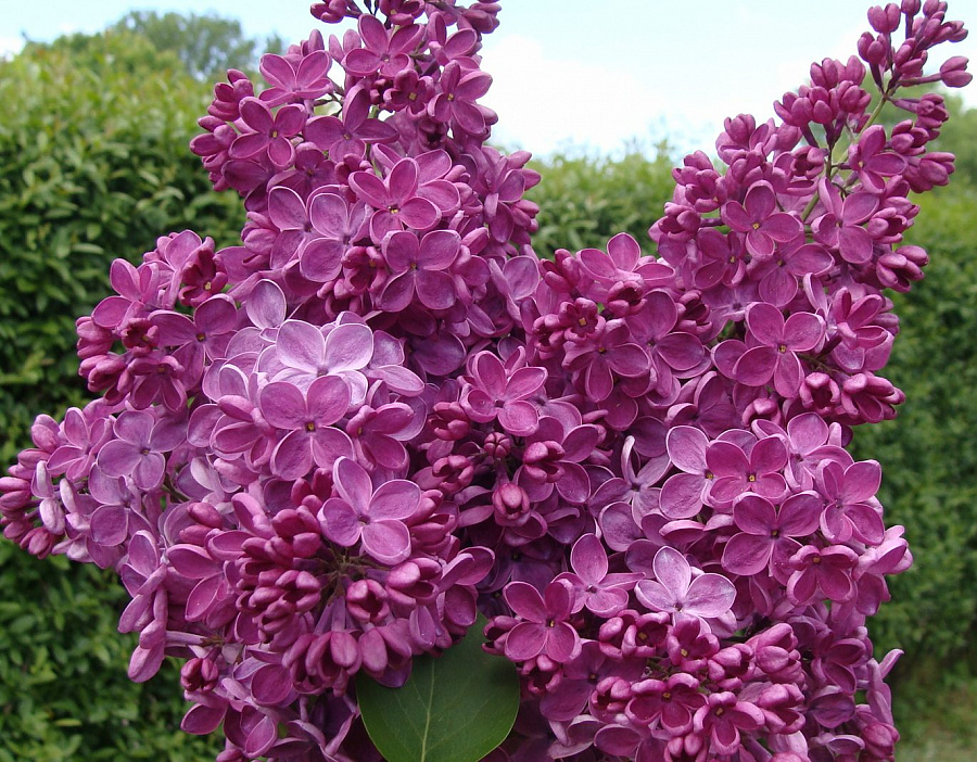 Саженцы сирени Знамя Ленина ((Znamya Lenina) отлично декорируют все виды садовых и парковых композиций, аллеи и живые изгороди. Кустарник яркий и эффектный, цветущий пурпурно – красными цветками в соцветиях. За это и был прозван знаменем Ленина. Выведен Колесниковым Леонидом Алескеевичем в 1959 году. Цветет в мае. Это один из поздних сортов сирени.