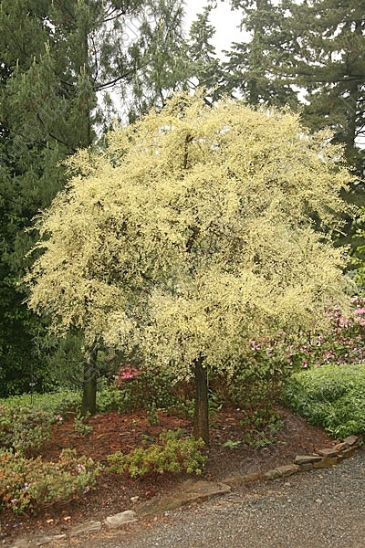 Саженцы Вяза мелколистного Гейша на штамбе (Geisha, Ulmus parvifolia) – это медленно растущий декоративный кустарник с кроной округлой плакучей формы. Ветви растения очень изящные и дуговидные. Листья растения маленькие и зубчатые. Они вырастают до 6 сантиметров, выглядят слегка шершавыми и имеют округлую форму. У листьев имеются бело-кремовые пятна, благодаря чему кустарник обретает яркий белый цвет.