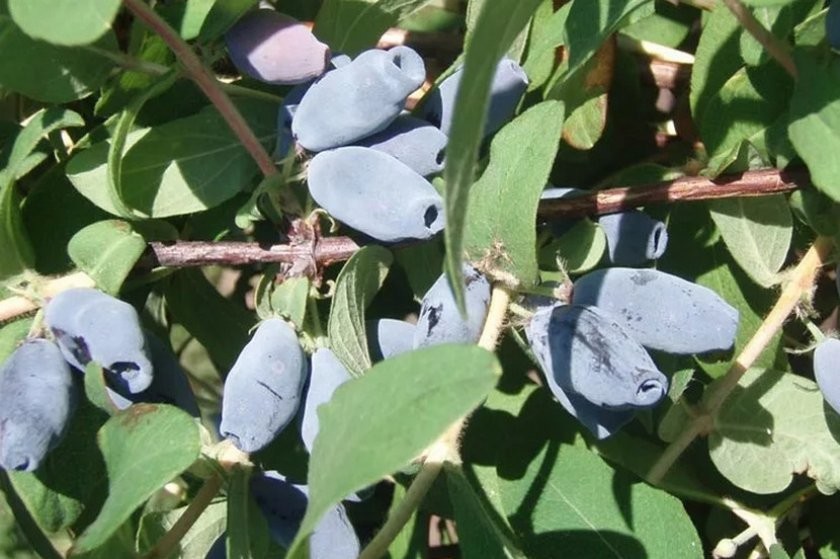 С одного куста жимолости можно собрать чуть больше 2 кг ягод. Плоды удлиненные, фиолетовые с белесым налетом, массой до 2 г. После созревания практически не осыпаются, что упрощает сбор урожая. Сорт Лазурит не боится низких температур, устойчив к болезням.